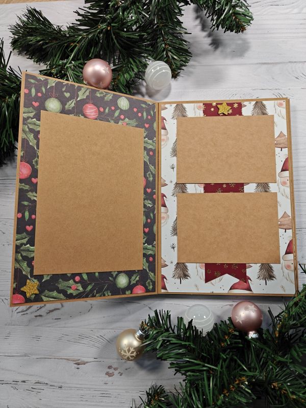 Envie de garder de jolis souvenirs de cette période de Noël ou de faire un joli cadeau personnalisé ? Cet album entièrement fait main composé de 8 pages est prêt à accueillir jusqu’à 12 photos (8 grandes et 4 petites).